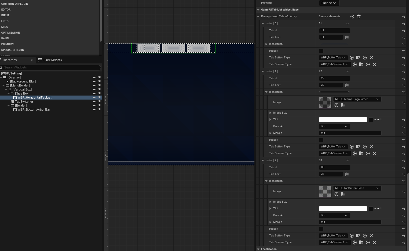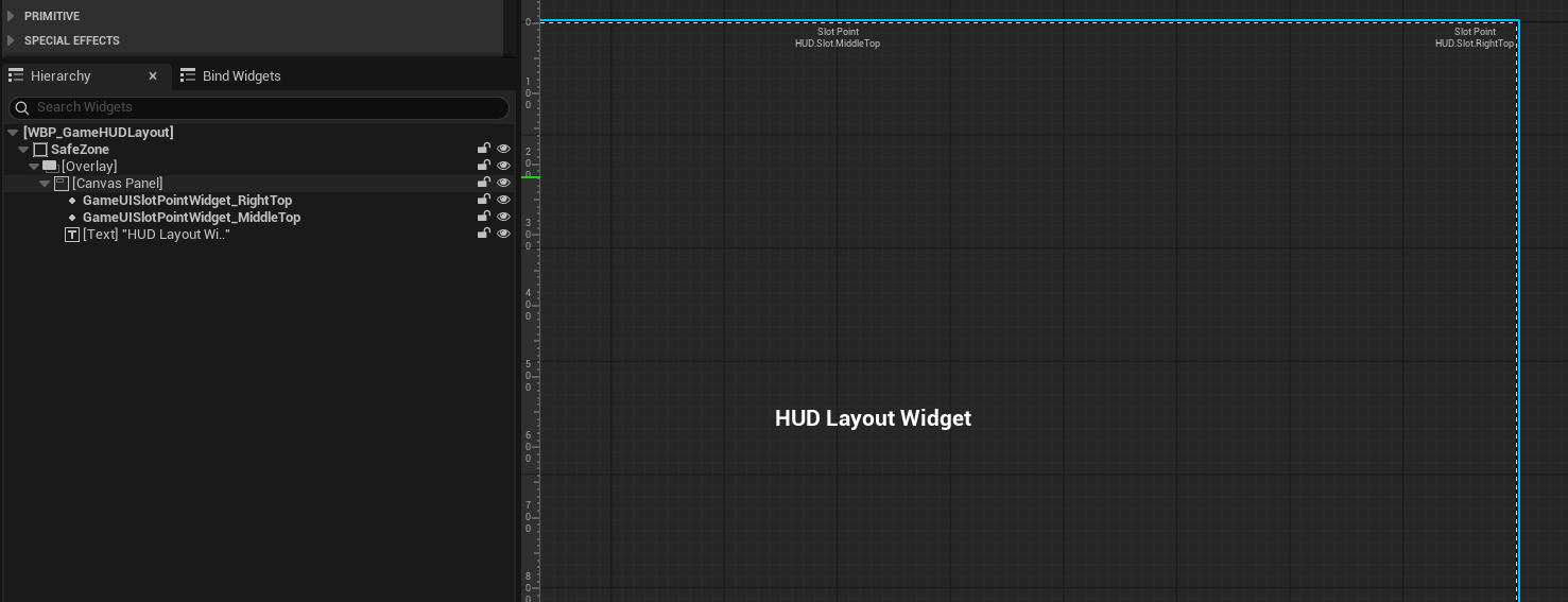 其中有一个特殊的Panel - GameUIHUDLayoutPanel,用于制作游戏中的HUD也就是战斗中UI。特殊点是它使用GameUISlotPointWidget对子Widget进行占位,使用GameplayTag对应子Widget,动态加载不同的子Widget。