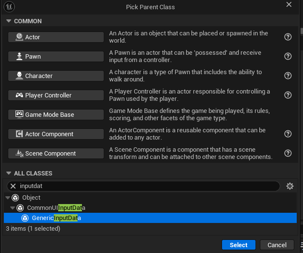在Common UI中一定不要使用任何关于Enhanced Input相关的设置,Common UI对Enhanced Input的适配并没有非常的完善。如果Gameplay中使用了Enhanced Input,也会跟UI的输入打架。所以这里就是使用Common Input即可。