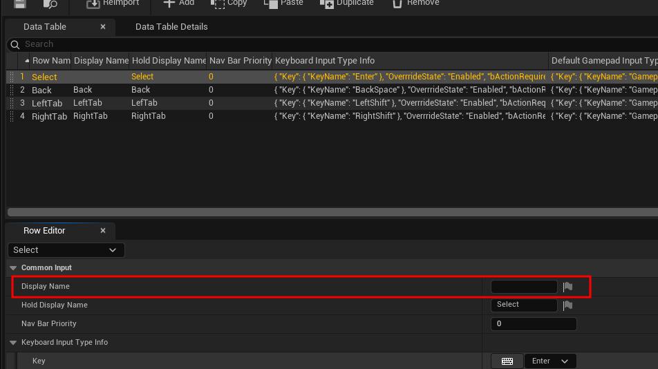 - 默认有设置对应的InputActionTable,这个表中几乎有所有按键的设置,如果需要可以直接复制其中的选项到我们新建的表即可。